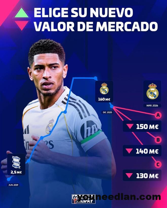 德转即将对西甲球员的身价进行更新。德转预热贝林厄姆身价下跌,最高1.5亿欧,最低1.3亿欧。