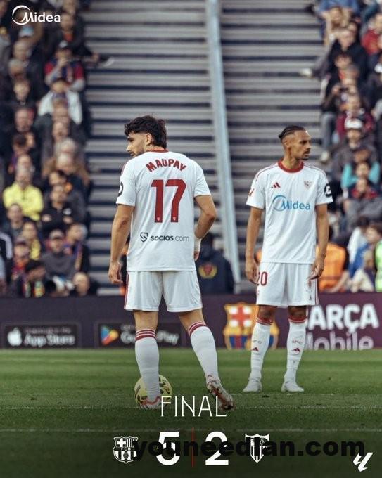 在周日晚进行的西甲第28轮比赛中,塞维利亚客场2-5不敌巴萨。