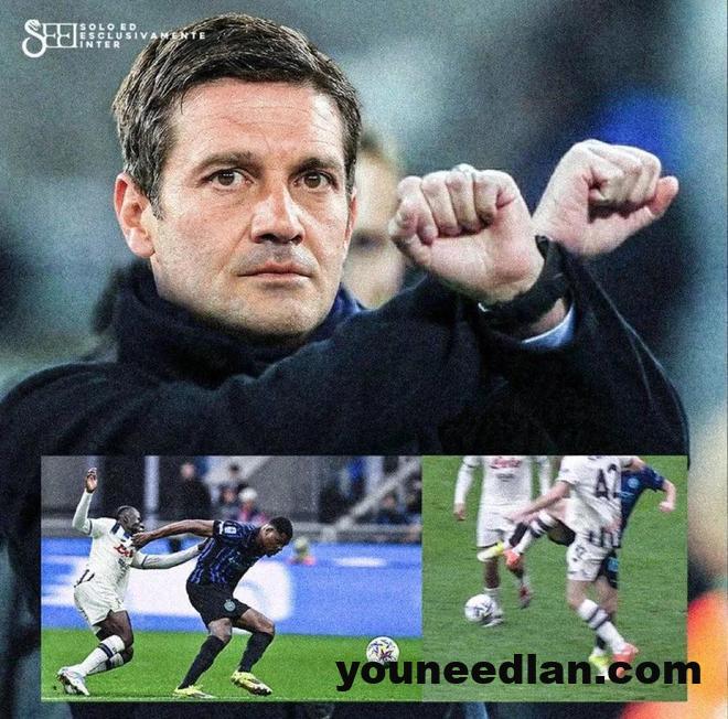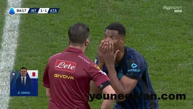这还没完,国米第86分钟再次发起进攻,禁区内弗拉泰西得球,而身后的亚特兰大后卫斯卡尔维尼则在没有碰到球的情况下踢到了弗拉泰西的脚上,主裁判无动于衷。随后邓弗里斯与埃德森禁区内争抢,却被对方直接下脚绊倒,主裁判吹罚进攻犯规!连续两次明显的点球犯规,但主裁判却视而不见,而VAR助理裁判也没有任何介入的迹象,摆明了就是不想让你拿到点球!