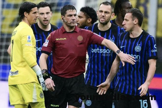 而这就是意大利足协、意甲联盟想要的结果!国米对于这种待遇并不陌生,上赛季末段也连续遭遇争议判罚,包括比塞克禁区内被拉拽犯规同样遭无视,目的就是保持国米和那不勒斯两者之间的分差不会拉大,延续争冠悬念直到最后一轮!两轮之前,榜首的国米将积分优势扩大到10分,在冠军争夺中一骑绝尘,这显然不是他们想要看到的。于是,米兰德比里奇禁区内手球被无视,这一场蓝黑德比中,对方进球前犯规、国米两次点球机会同样被裁判忽略,连续两场遭遇争议判罚,这样赤裸裸的控分行为令人作呕!