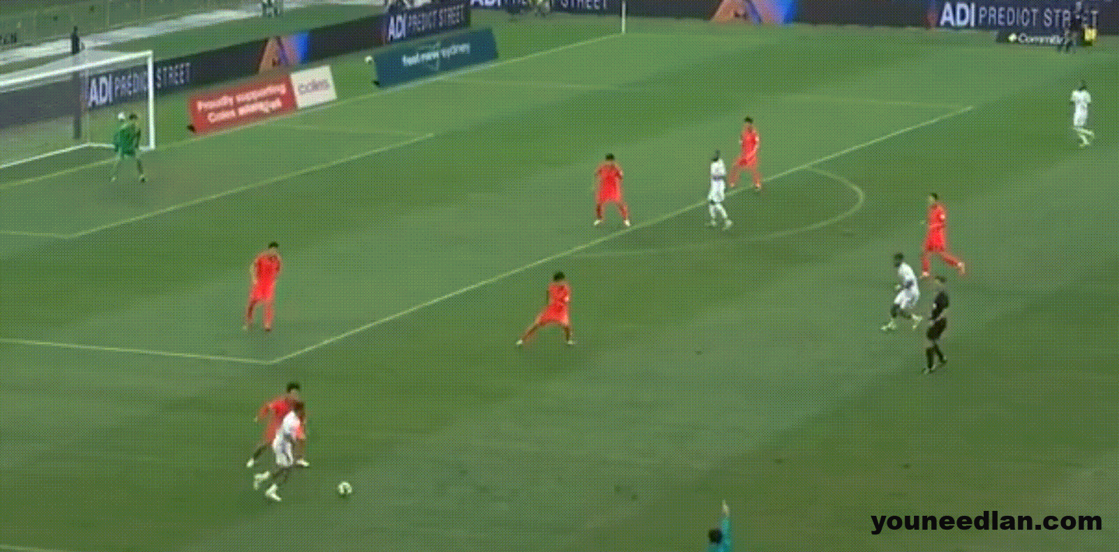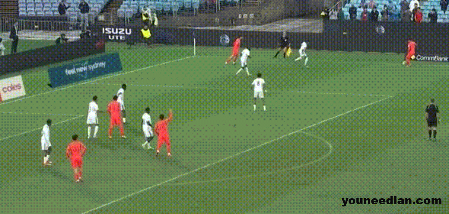 这次王上源在中场的让球向前推进被陈达毅拉倒,国足正是依靠这次被犯规后的定位球进攻,打进了本场比赛的第二个进球。