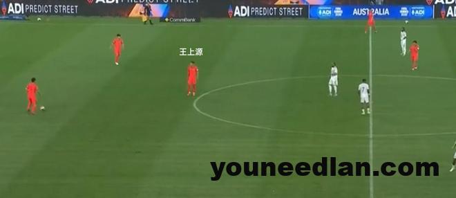 在国足控球时,王上源会回撤到两名中卫身前要球。