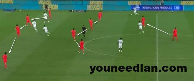 半场两球落后,再加上逐渐适应了和喀麦隆的比赛强度,邵佳一果断在下半场重新踢回了四后卫,防守端回到了熟悉的4-4-2阵型。