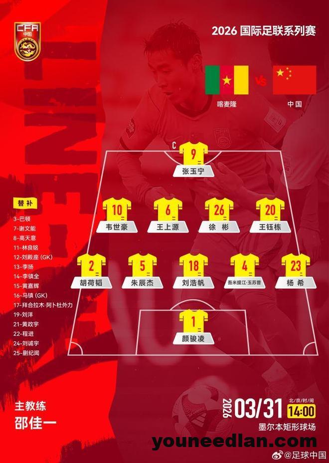 第二场面对轮换了全部十一人且平均年龄只有22岁的喀麦隆,邵佳一同样排出了一套平均年龄只有25岁的首发阵容,其中包括了6名参加过U23亚洲杯的球员。