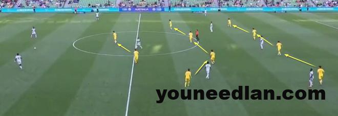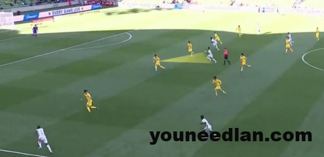 作为三中卫靠右的吾米提江在第一个丢球中暴露了他转身慢的弱点,喀麦隆前锋永乔在离吾米提江还有2-3个身位时向禁区加速冲刺,最后竟然将吾米提江压制在了自己的身后,此外刘浩帆也没有第一时间启动跟上他,埃永正是利用永乔创造出来的空间攻破了国足的球门。