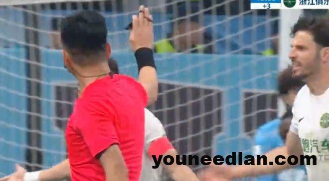然而,主裁判此时鸣哨示意犯规,这次判罚激怒了浙江球员,程进、王钰栋、刘浩帆等球员长时间围住主裁判质疑。然而,主裁判最终认定进球无效。